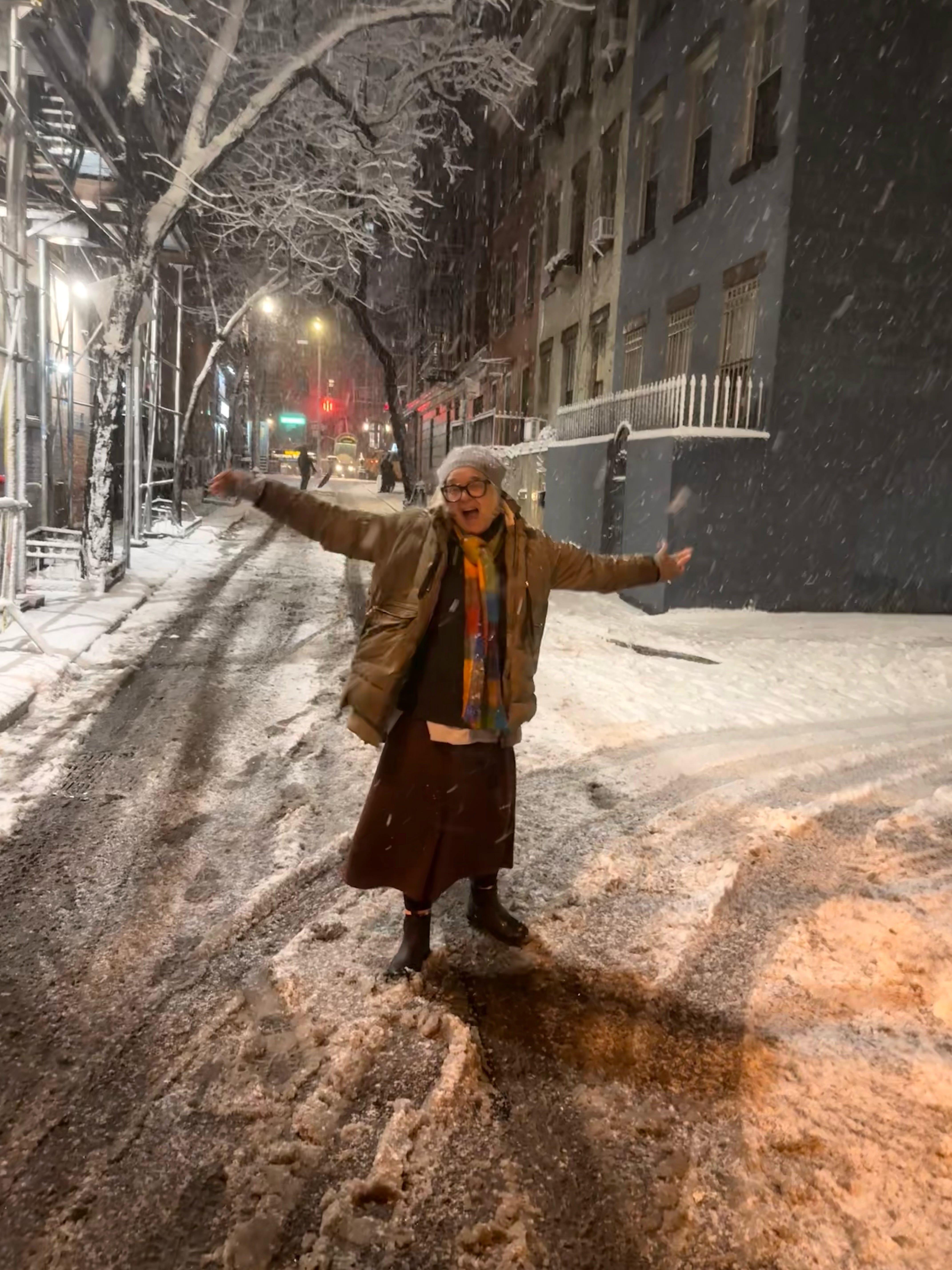 So let’s appreciate our predictable days when we can. Get lost in our work. Knit a Sophie scarf again. Walk in our neighborhood on a snowy night, holding the hand of someone we love. Celebrating our own Piggy—someone or something loved good and hard and is still beautiful.